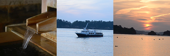 わたしたちがお届けできる海の恵みは、波を揺らす静かな風。あたりを赤く染める夕陽。目が覚めるような海と空の青。そして、その自然から生まれる至福の食。どうぞ自慢の海の恵みを五感で味わってください。
